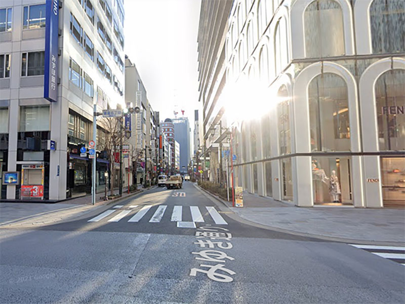 1分ほど直進すると左手にコートヤード・マリオット銀座東武ホテルの駐車場入り口があります。対面にGIRAC GINZAビルがあります。